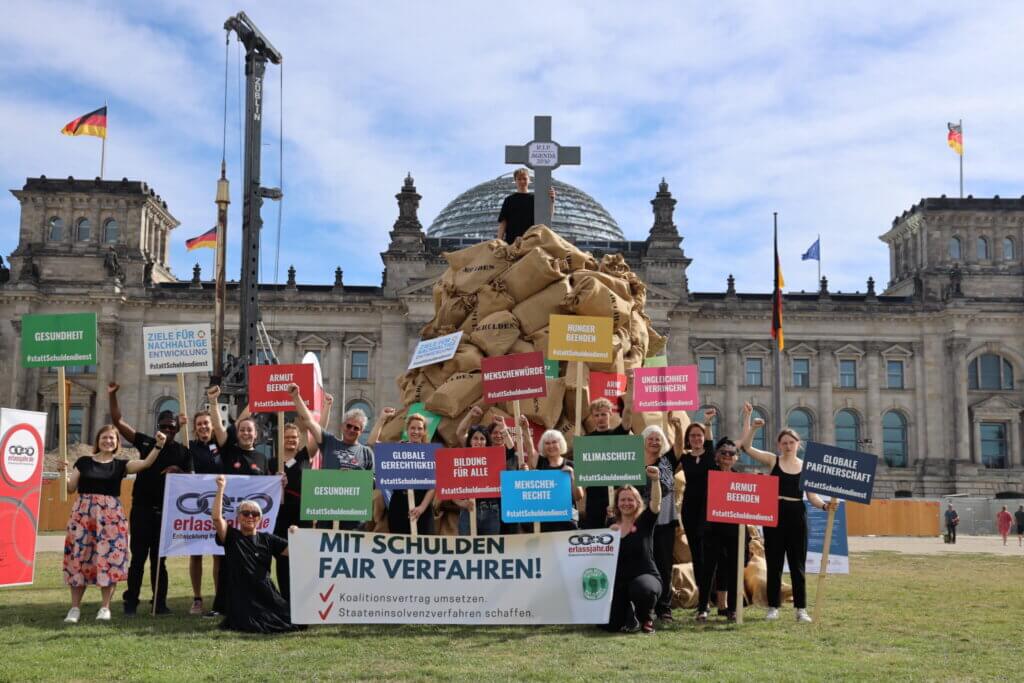 Das deutsche Entschuldungsbündnis „erlassjahr.de – Entwicklung braucht Entschuldung e. V.“ setzt sich dafür ein, dass den Lebensbedingungen von Menschen in verschuldeten Ländern mehr Bedeutung beigemessen wird als der Rückzahlung von Staatsschulden. erlassjahr.de wird von mehr als 500 Organisationen aus Kirche, Politik und Zivilgesellschaft bundesweit getragen und ist eingebunden in ein weltweites Netzwerk nationaler und regionaler Entschuldungsinitiativen.